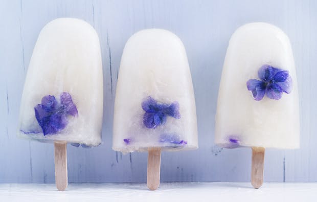 De blomstrende ispinde er fra bogen "Lykken er is." Forfatter-parret og chokoladebloggerne Anne au Chocolat og Maja Ambeck Vase giver dig her opskriften på søde ispinde lavet af lemonade!