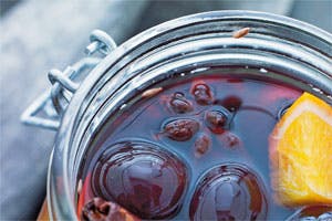 Pil stilken af kirsebærrene og skyl dem i koldt vand. Bring sukker, vand, kanel, eddike og stjerneanis i kog i en gryde. Skær appelsinen ud i kvarter og lad den koge med i lagen i et par min. Hæld forsigtigt kirsebærrene i lagen og tag gryden af varmen.