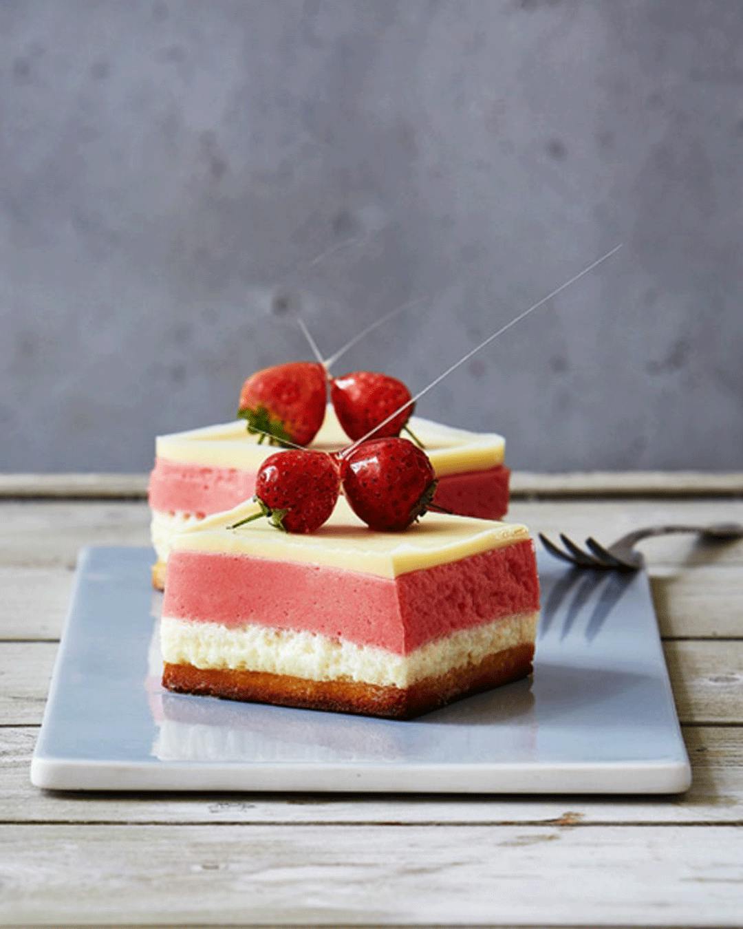 Valentinsdag er en fejring, og her kommer en til det formål: Lyserød dessertkage - eller skal vi kalde den en kærlighedsdessert? Den er nemlig fyldt med champagnefromage.