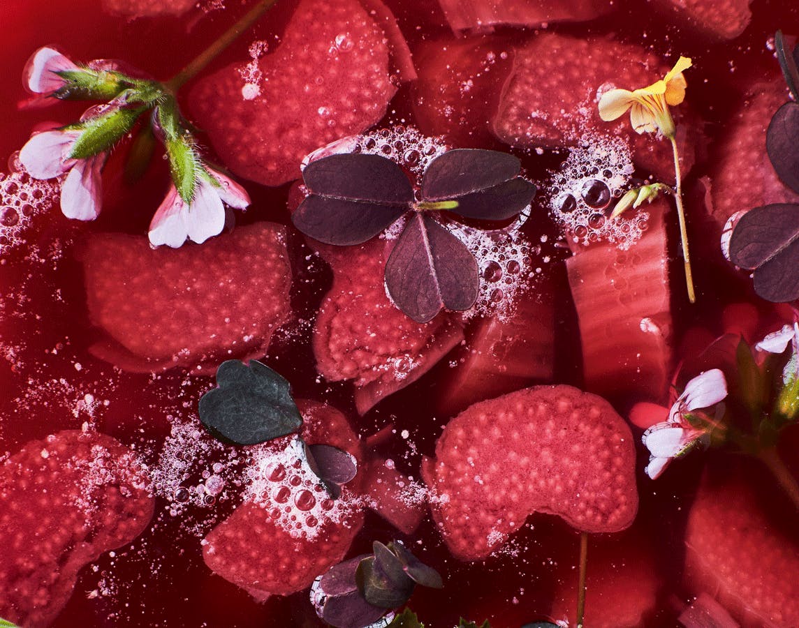En skøn dessertospkrift på rabarbertærte med silkeblød rabarbercurd.