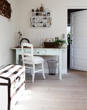 Ideen til en indendørs makeover kom, da Anne for fire år siden fik en bog om landlig fransk boligstil i hænderne og hurtigt blev grebet af stilen. Så meget, at hun besluttede at udskifte alle møbler og ting i huset med en gennemført nostalgisk stil med lyse møbler fra Sverige, Frankrig og Danmark.