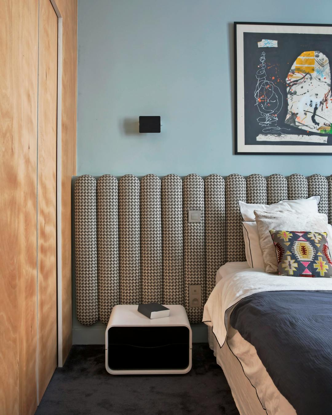 En gavl, der fylder hele væggen bag sengen, er med til samle soveværelset og få det til at syne større.