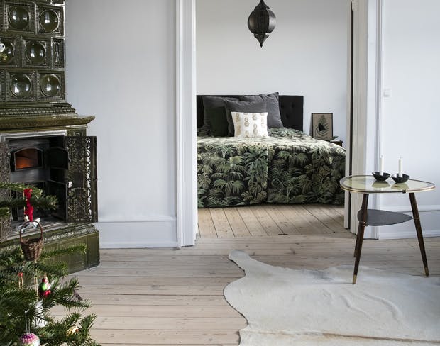 Fie Sandfeld og hendes familie har masser af traditioner. De fleste må man gerne bryde – bare ikke når det handler om juletræet. – Jeg kan ikke tåle gran, men det er der ikke noget at gøre ved. Et juletræ skal vi have, selvom det kun er fra lillejuleaften til juledag, fortæller Fie Sandfeld. Pynten på træet består af en skønsom blanding af arvestykker, børnenes kreationer, rejseminder og fund fra supermarkeder og er i alle farver: rød, gul, grøn og med glimmer. Det virker dog ikke kaotisk. Farverne i rummene er nemlig helt neutrale med hvide vægge, og møblerne er grå og sorte i et enkelt design. – Det er forskelligt fra år til år, hvordan vi pynter op til jul, men jeg kan bedst trække vejret, hvis det er forholdsvis enkelt, pyntet med løs hånd og ikke alt for stringent og perfekt. Levende lys, lyskæder og store stjerner går dog altid igen, siger Fie Sandfeld. Læs også: Boliggalleri - rebelsk humor og eksotiske mønstre