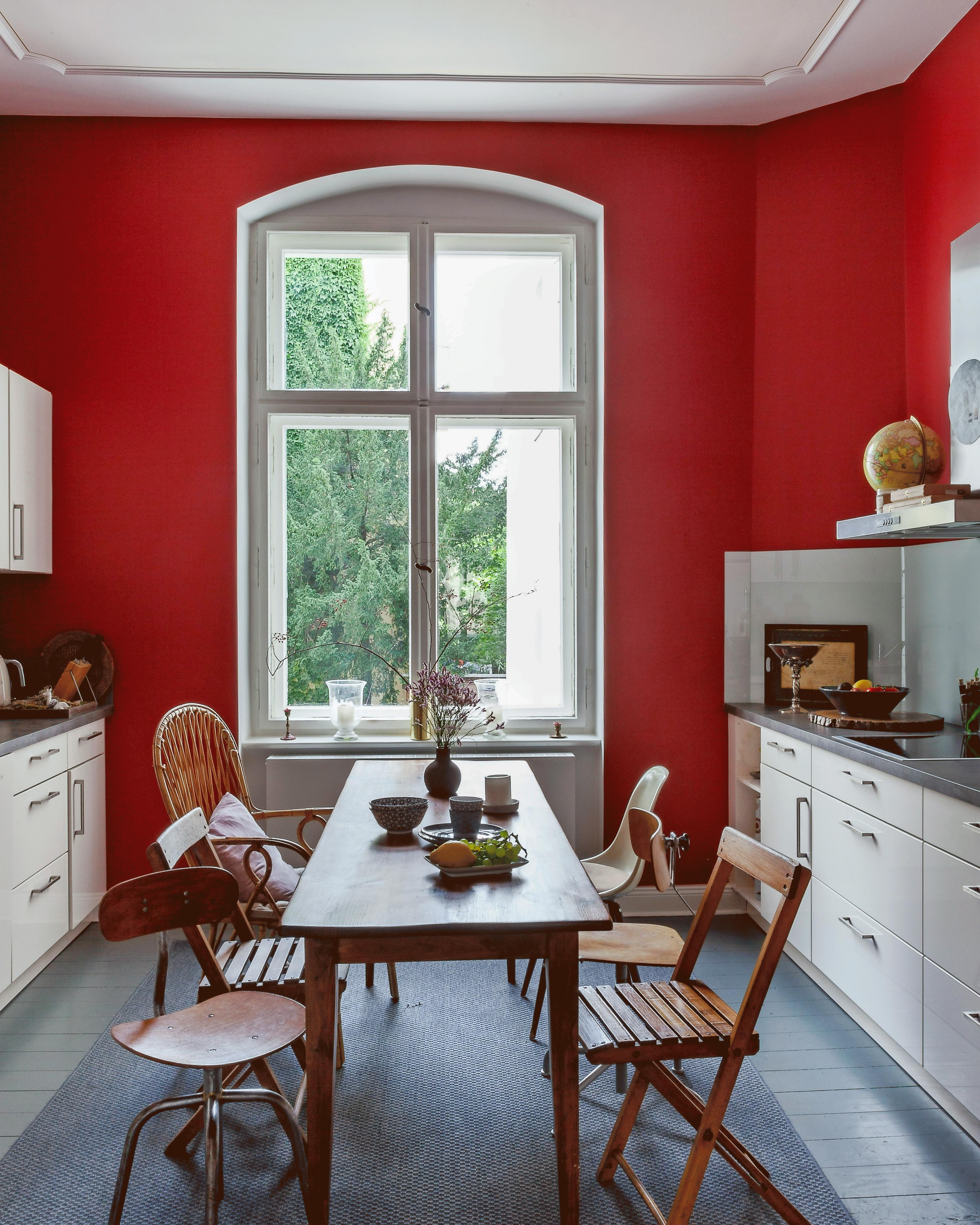 18 procent af Berlins 3,6 millioner indbyggere er udlændinge. Det giver en sammensat by med en energi, der inspirerer Malou Haberla i hendes indretning. Det grå plankegulv er malet med farven down pipe fra Farrow & Ball.