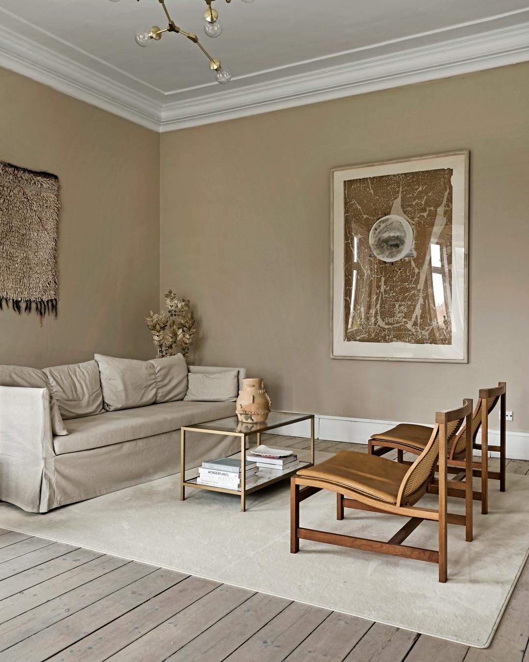 Stil: Minimalistisk boheme med en blanding af designepoker, men holdt i beige nuancer.