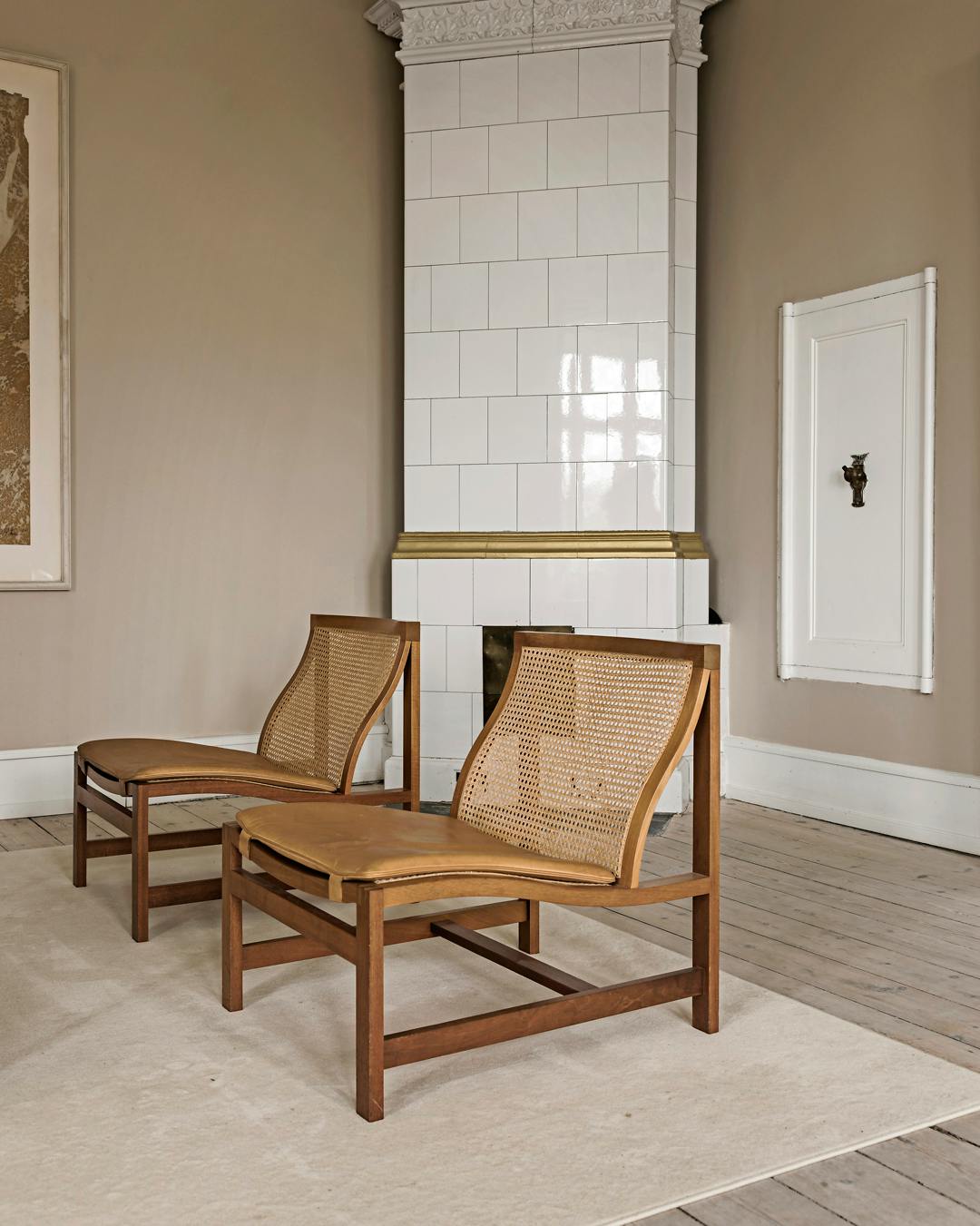 Gamle detaljer såsom paneler på væggen og søjlekakkelovne hørte typisk til i huse i nyklassicistisk stil fra slut-1700-tallet og frem. Stolene er designet af Rud Thygesen og Jonny Sørensen og fundet på auktion.