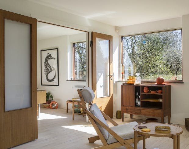 Blandt teak, farvet glas og originalt design i en autentisk villa i Nordsjælland bor operasanger og sociolog Sasse Flodgaard og musiker og højskolelærer Stig Kaufmanas med sønnen Thomas. Husets 212 m² blev oprindelig bygget af Stigs forældre, da han var et år, og parret har med deres overtagelse sat det nænsomt i stand med tanke for husets ånd. Selvom der blev flyttet en del vægge, står huset som et moderniseret tidsbillede, der gemmer på stedets fortællinger.