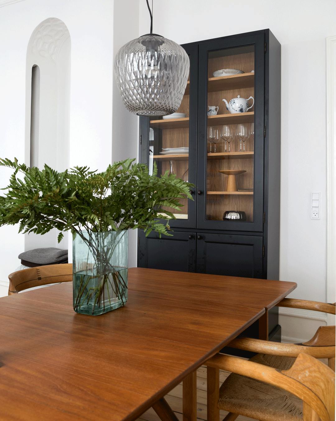 Et vitrineskab er ikke alene smukt, det er også enormt funktionelt og brugbart ikke mindst i et køkken, hvor det kan erstatte de traditionelle overskabe. Vitrineskabet er fra SkabRum.