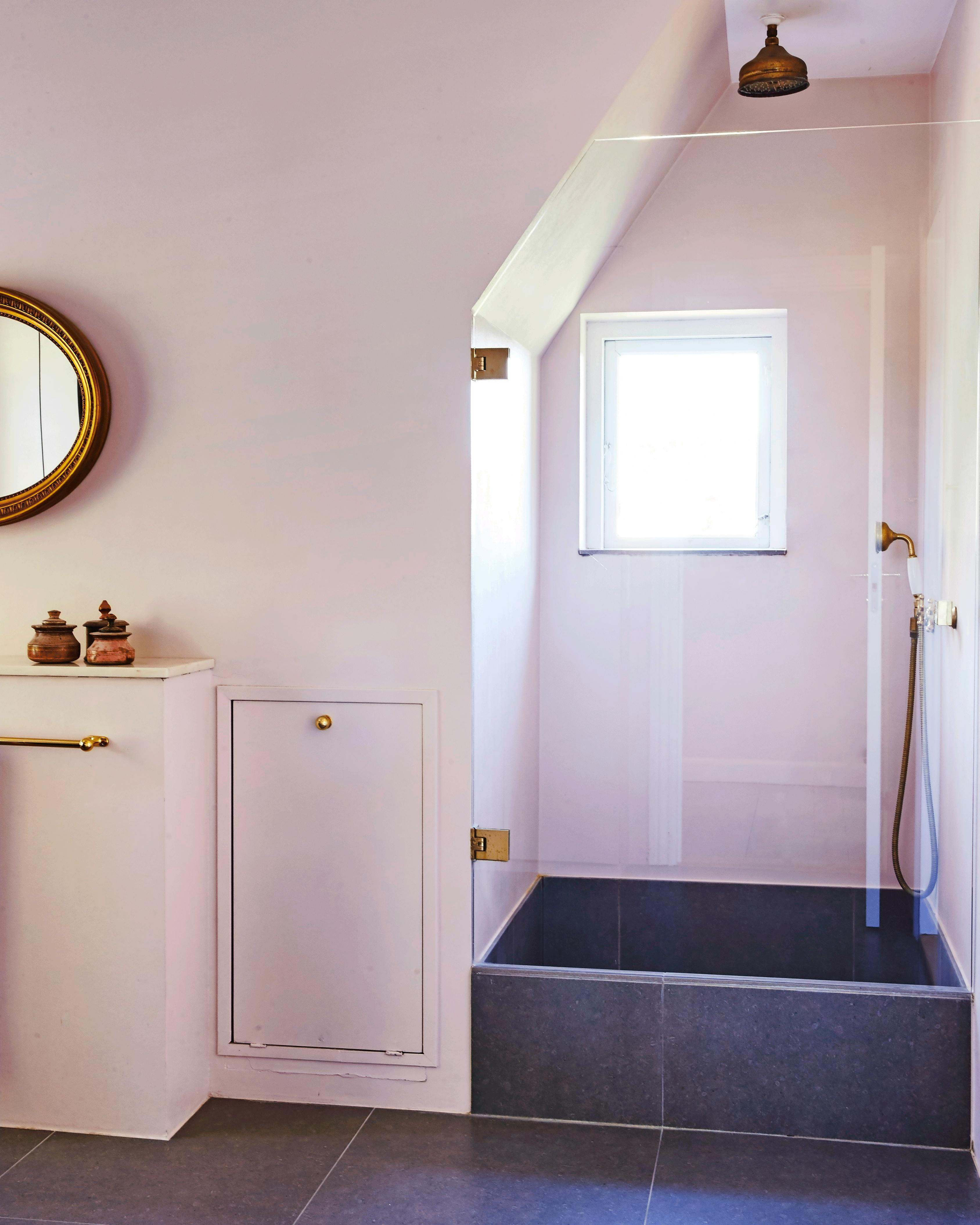 Ordet pastel stammer fra det latinske pastellus, der er farve fra blade, og siden på italiensk og fransk har haft betydning af farvet materiale, der er lavet til en pasta. Væggene på badeværelset er malet med pastelfarven Calamine fra Farrow & Ball.