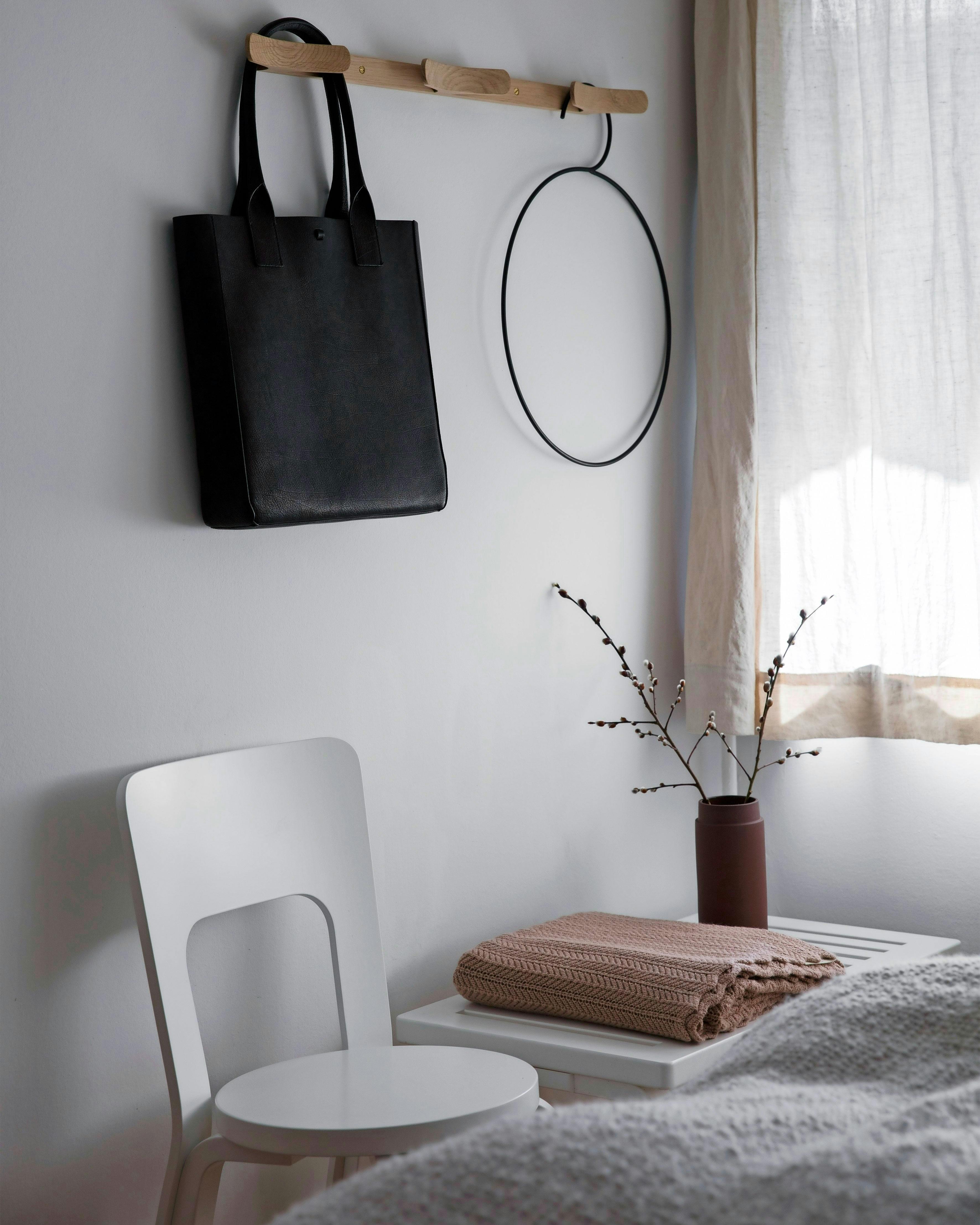 Lad gardinerne i dit soveværelse være lette og transparente, så du vågner med solen om morgenen og går i seng med den om aftenen – det giver dig det sundest mulige søvnmønster. Stolen er designet af Alvar Aalto.