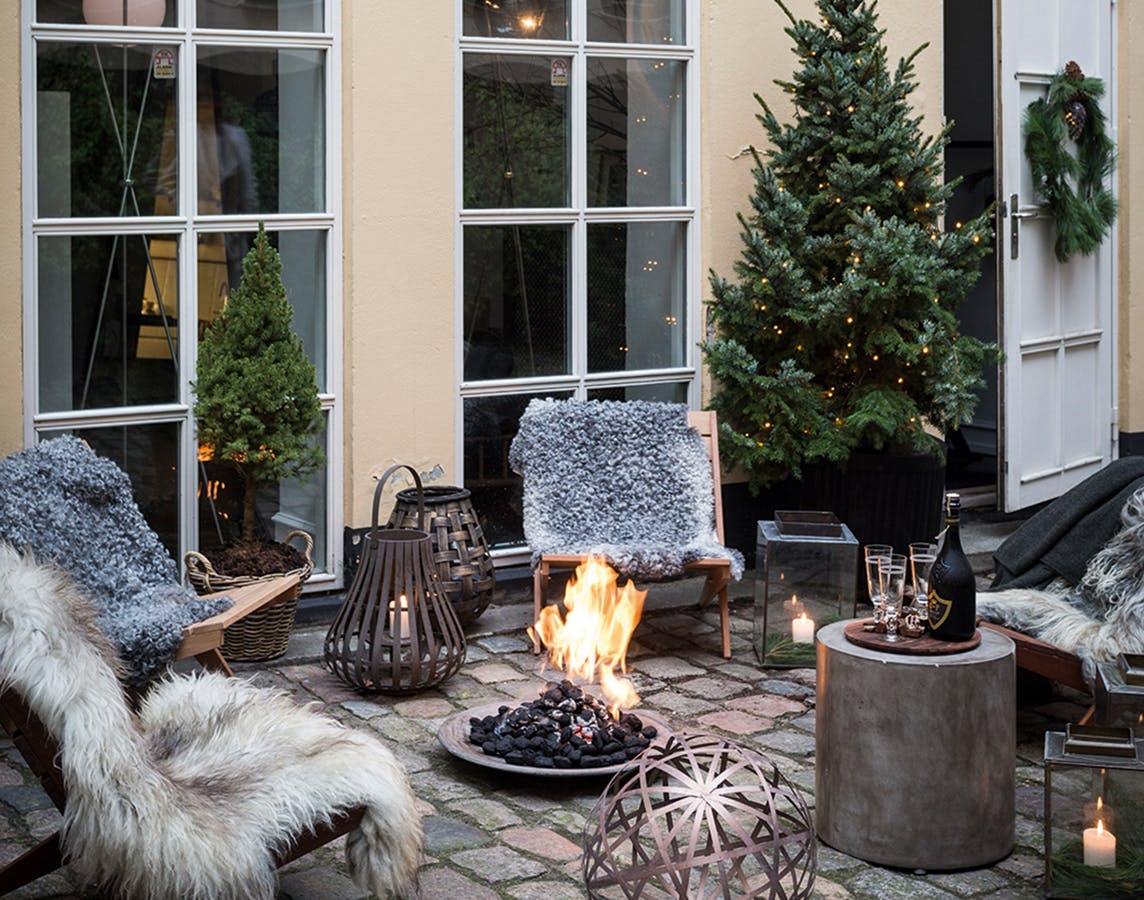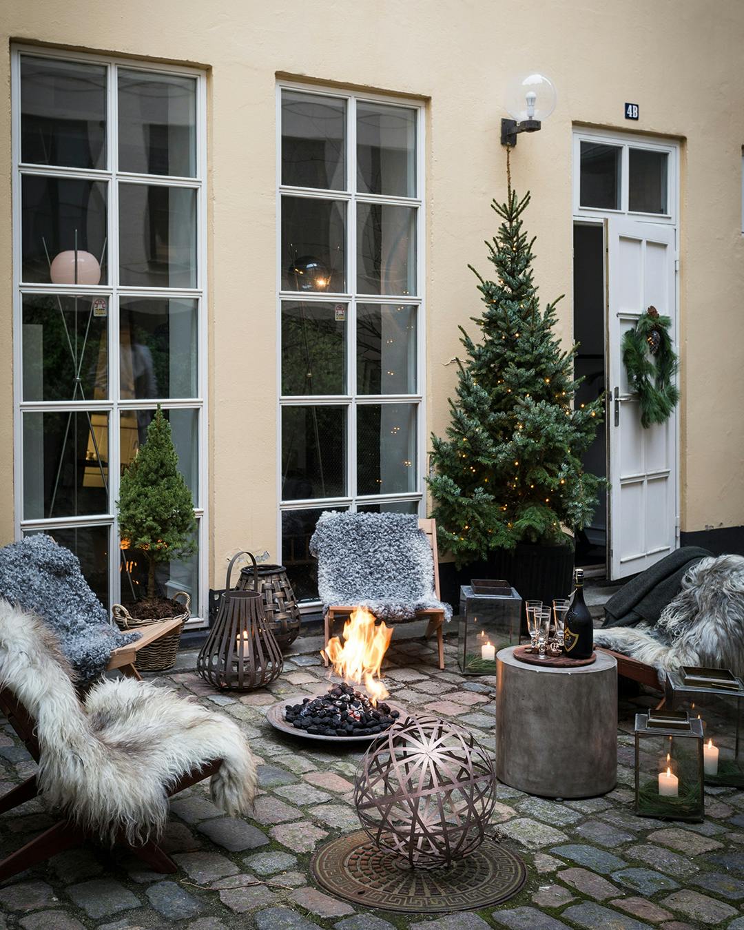 Hjemmet, som ligger i hjertet af København, er fuldt af kogler, gran, fyr og mos, og udenfor blusser ilden i lanterner og bålfad.