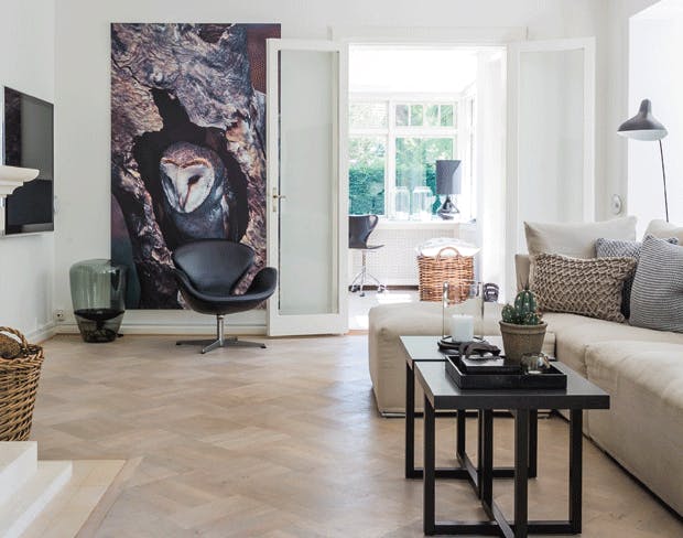 Parret har især gjort sig umage med at bevare husets oprindelige udtryk og de klassiske rammer, men samtidig opdatere og modernisere i en blød stil. Her møder du et mix af polstrede møbler og stringent design, der tilsammen udgør den luksuriøse boheme-stil, som præger Karina Eg og Morten Ibsens hjem.