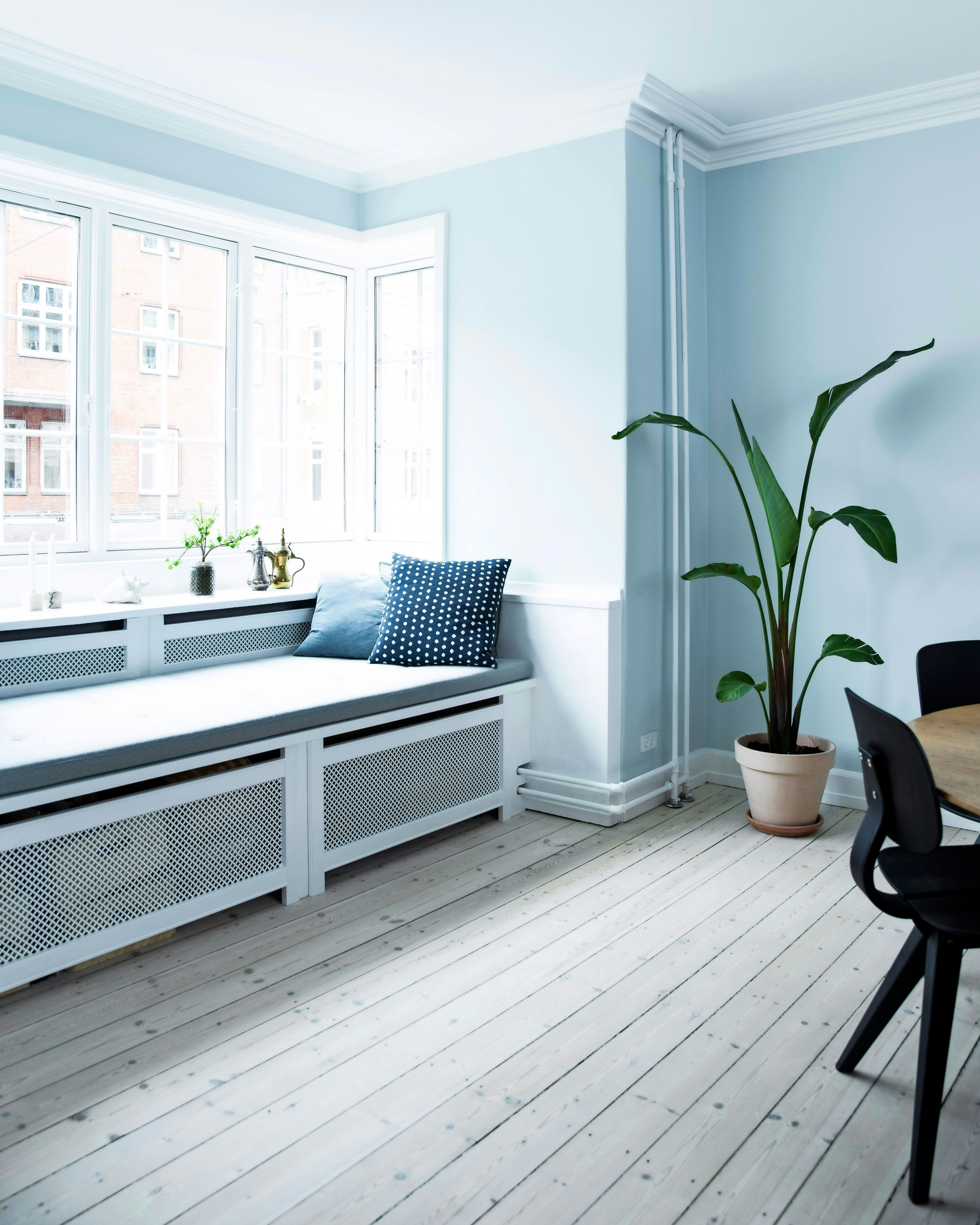 Hvis du skal have nye radiatorskjulere, kan du på forhånd tænke ekstra siddeplads ind ved at få dem lavet som en bænk ved de vinduer, hvor udsigten er bedst.