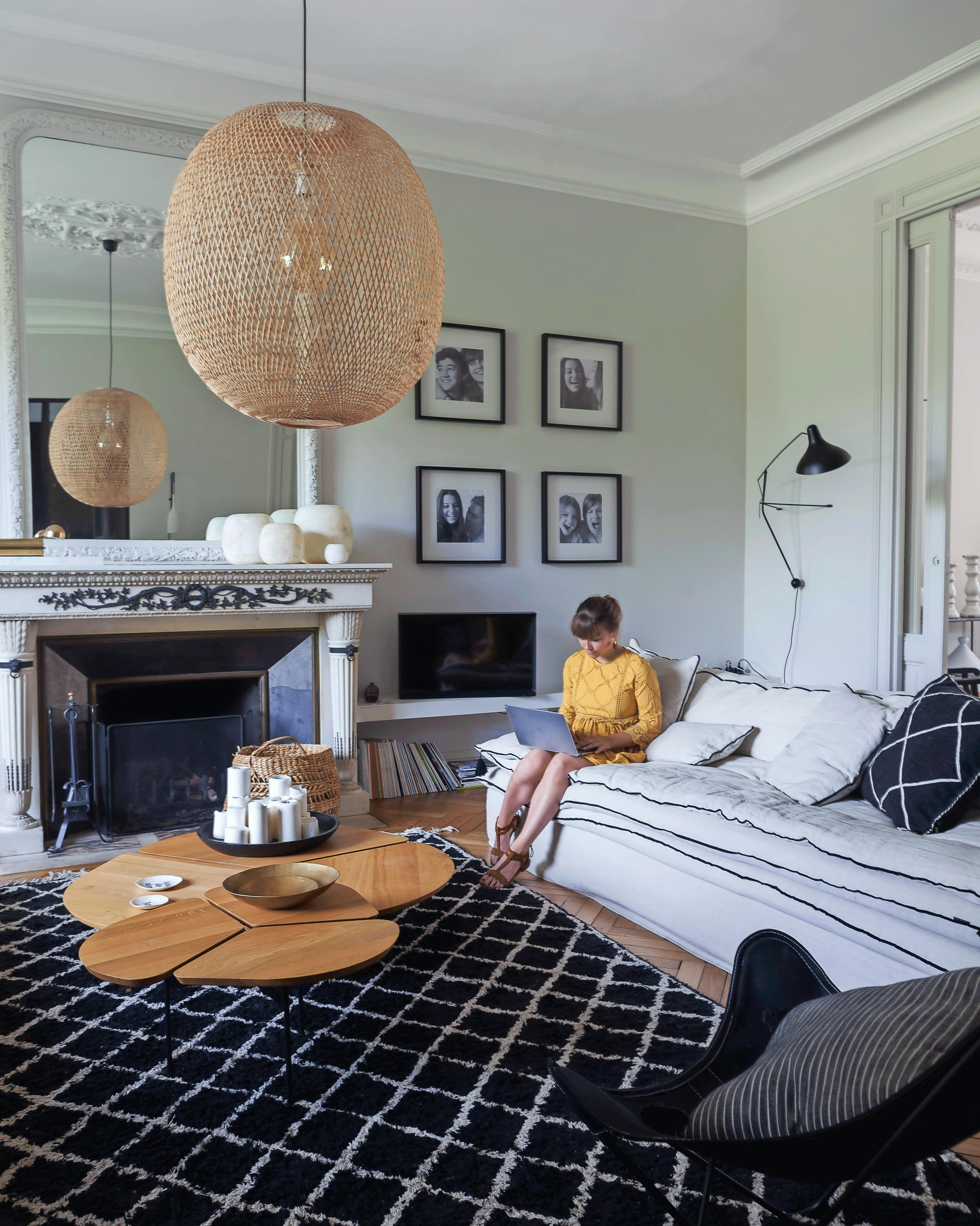 – Mit mål var en atmosfære, der både var chik og varm. Jeg har brugt min yndlingsfarvekode, sort/hvid, og varmet den op med naturligt træ og hør, hyggelige tæpper og lidt farver i soveværelset, forklarer Ludivine Degas, der er meget opmærksom på at mixe nye møbler med ting, som har en fortid eller en historie.