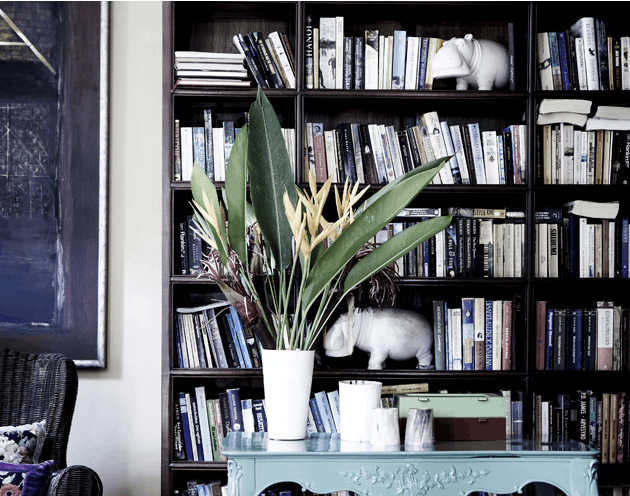 • Har du mange bøger stående? Overvej at give samlingen nogle afbræk i form af bokse og små skulpturer, der fungerer som bogstøtter.