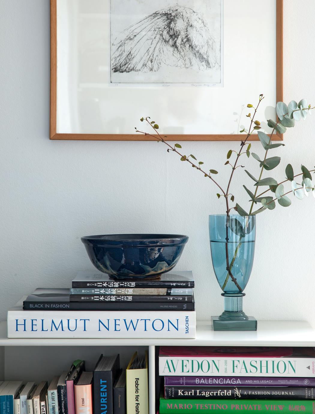Når du laver et stilleben, så forsøg at give indtryk af en samlet opstilling. Det gør du ved at hænge billeder lavt og stille vaser, skåle, lysestager etc. tæt. Bøger som underlag er også med til at samle.