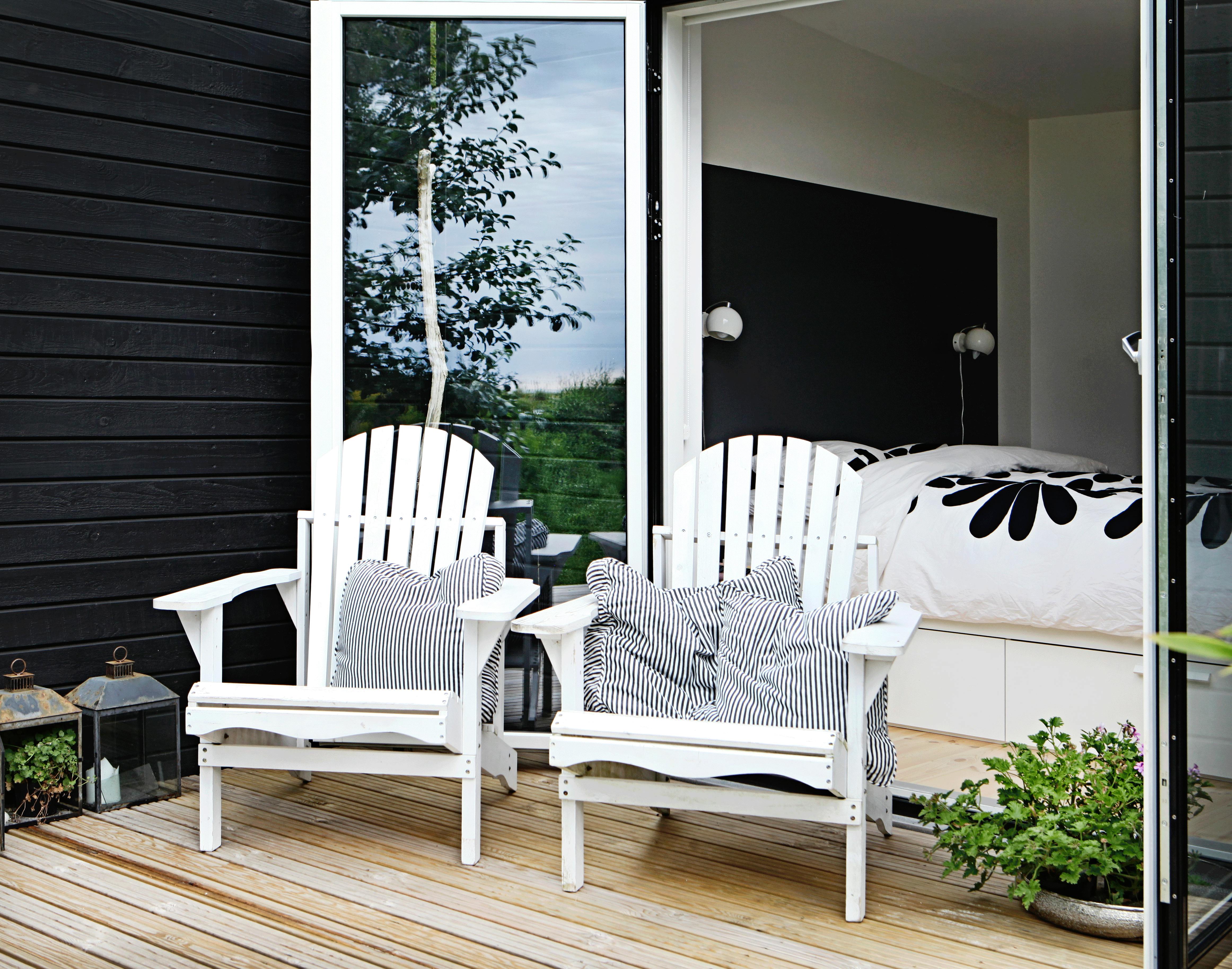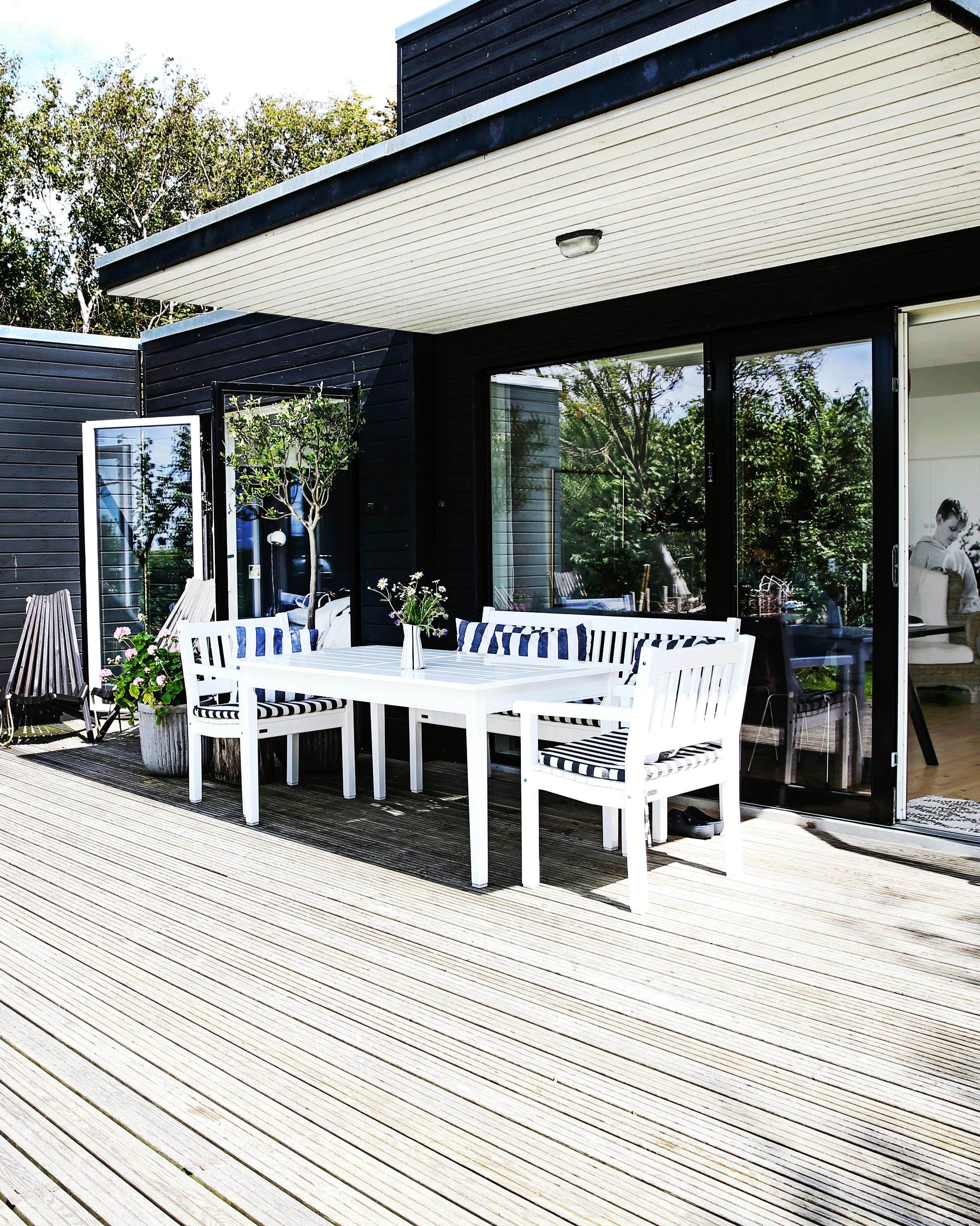 Der er bygget en stor terrasse i forlængelse med sommerhuset, som giver et sammenhængende udtryk om man er ude og indenfor.