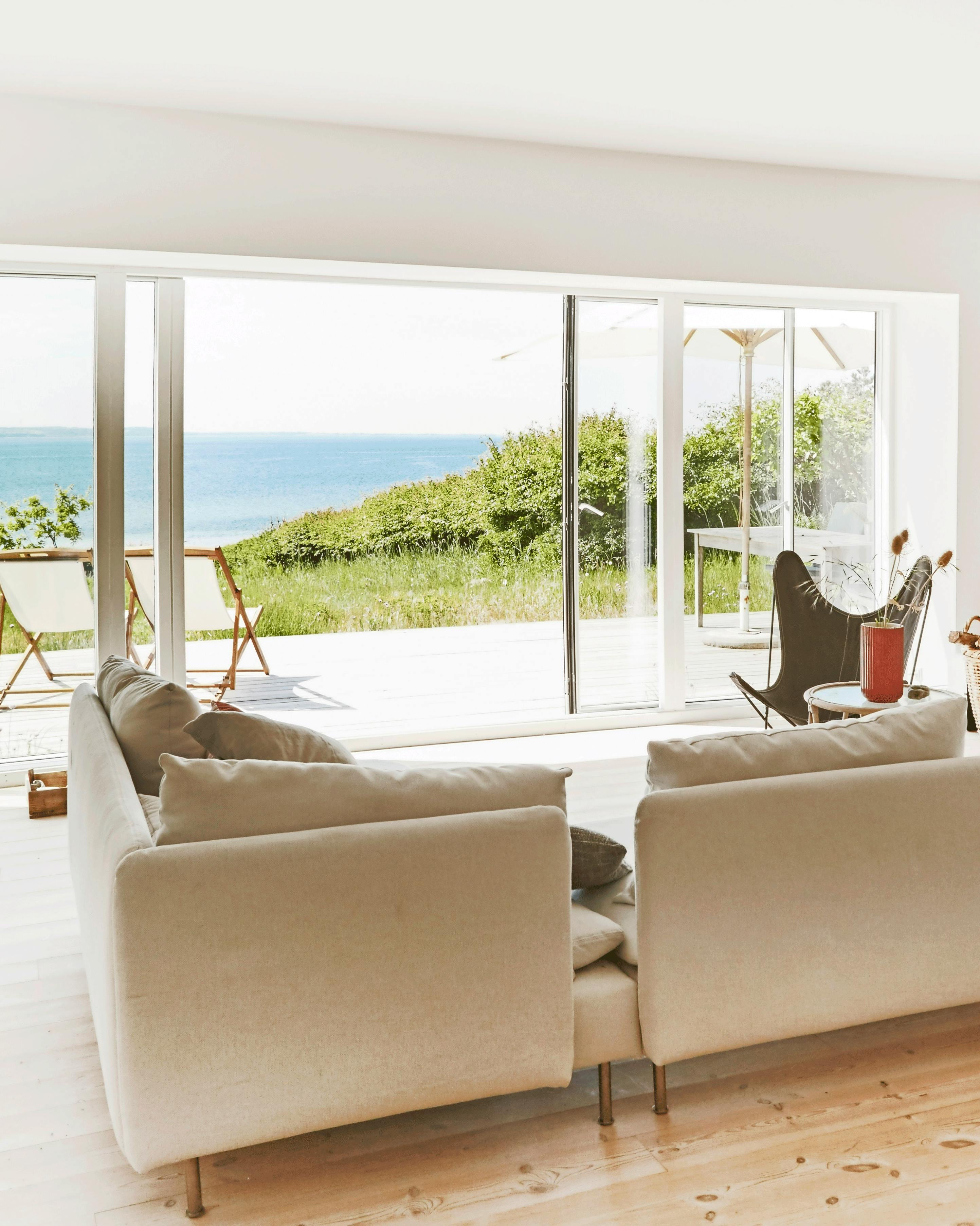 Fra hele husets sydvestside er der en storslået udsigt over Sejerøbugten, og ægteparret bruger huset hele året rundt – som alternativ til deres bybolig på Holmen i København.