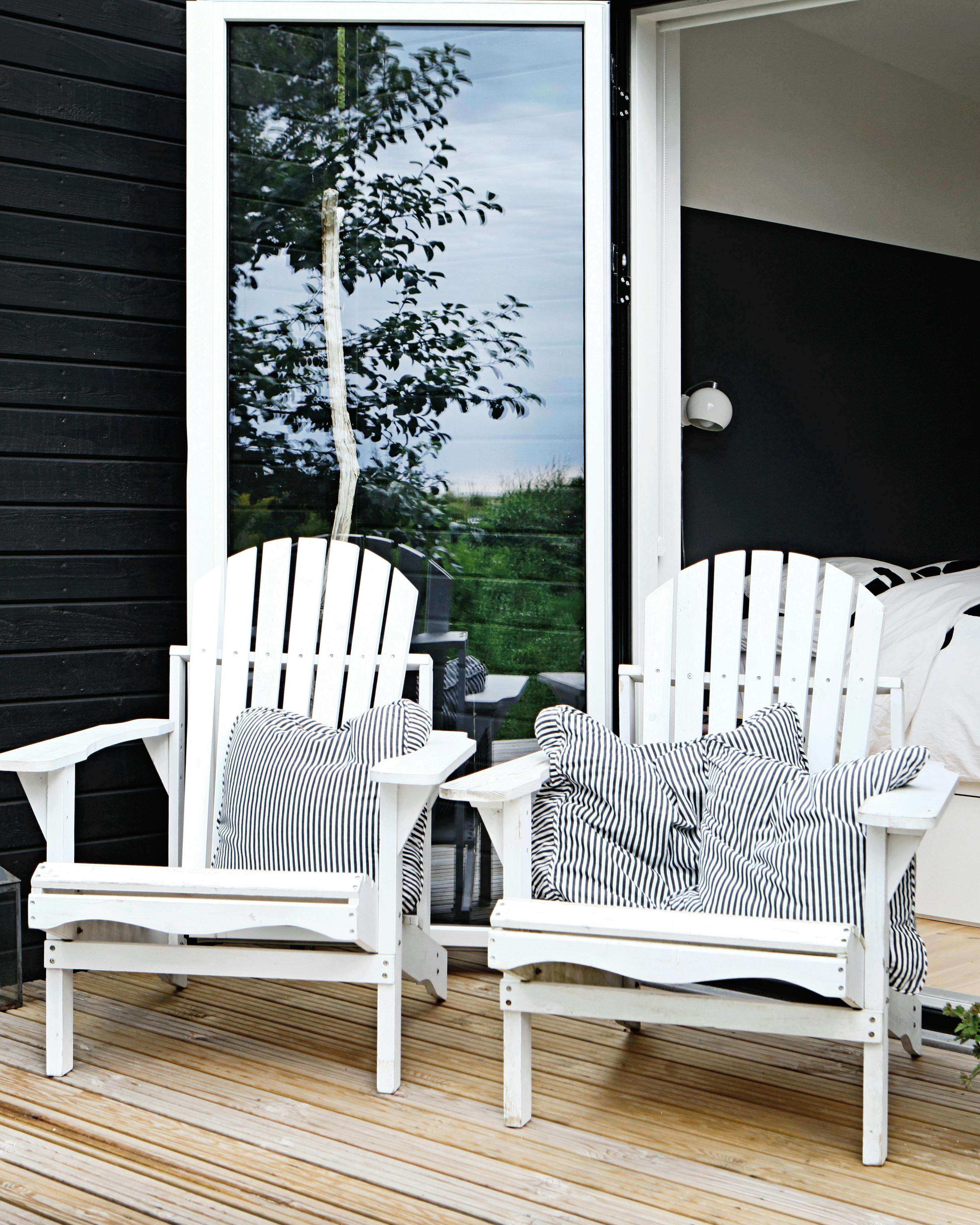 Med en bred terrasse i hele husets længde bliver der både plads til at nyde udsigten fra liggestolene og andre mindre stillesiddende aktiviteter.