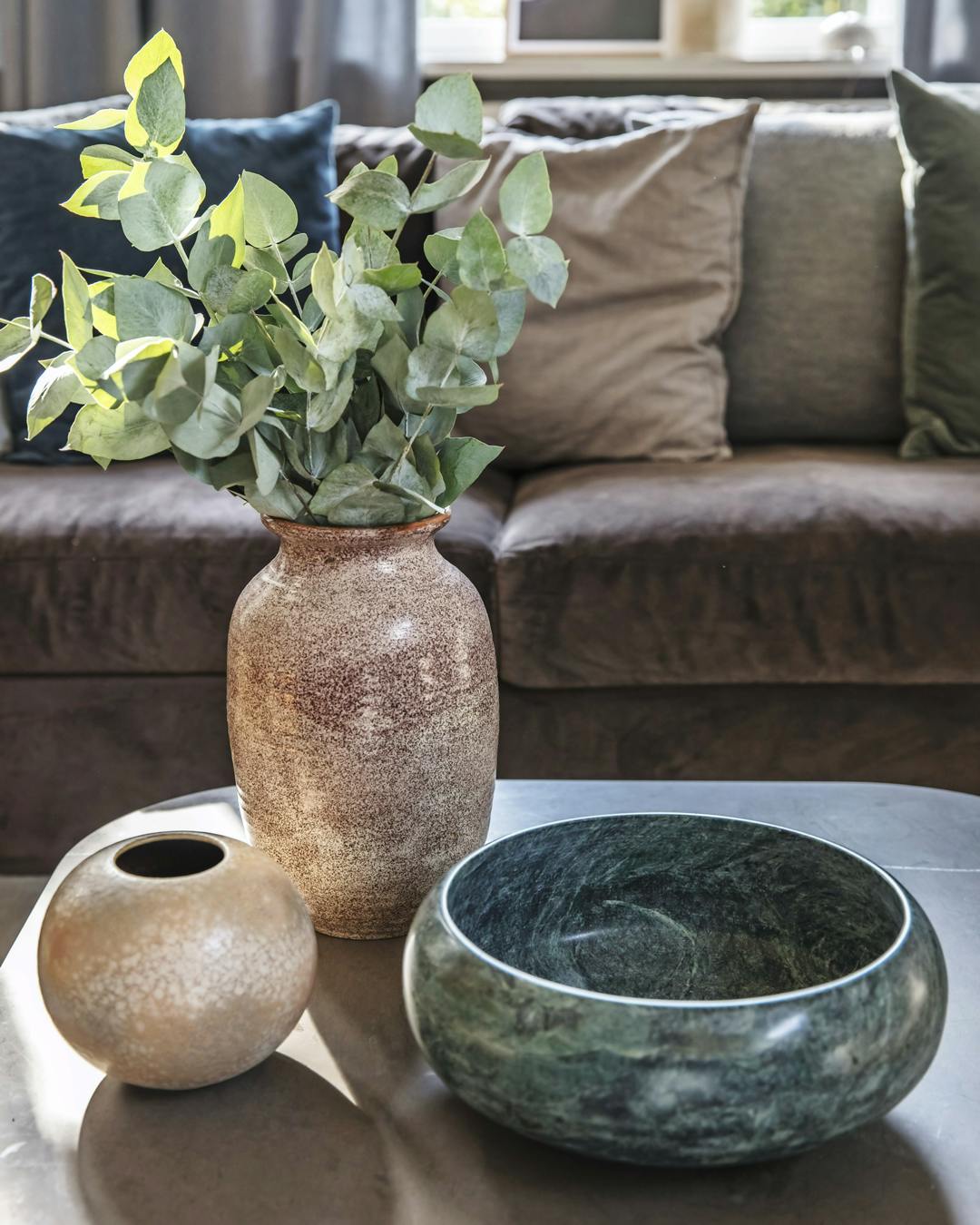 Et badeværelse behøver ikke at være klinisk hvidt. Med mosaiksten i en varm jordfarve spreder hjemmets varme sig helt ud på de kolde klinker.