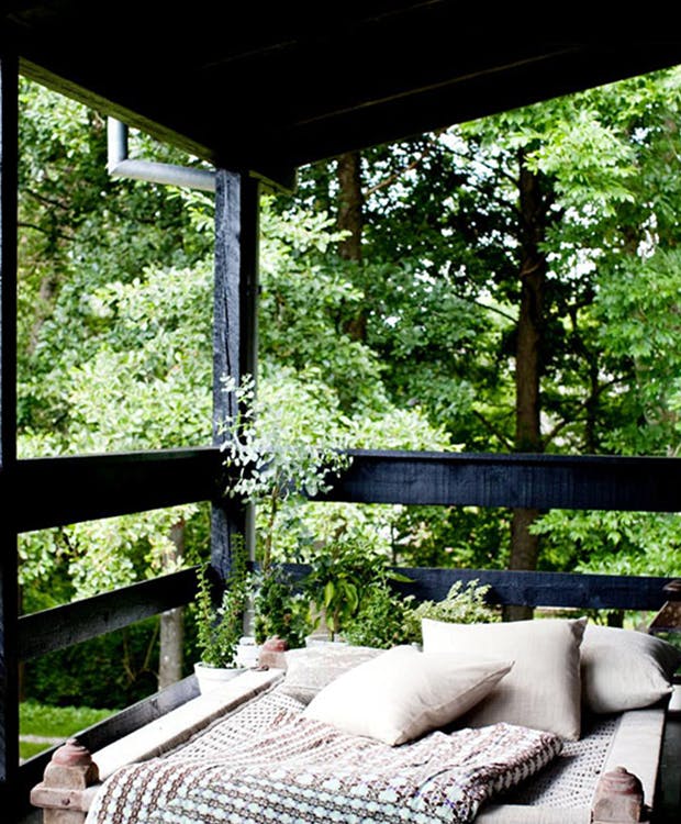 Indretning både ude og inde hænger tæt sammen med naturen, ikke på den romantiske måde, men på en rå måde, der skaber en så fin balance mellem ude - og inderum, at de flere steder næsten smelter sammen. Og så er indretningen præget af de mange sjove fund fra rejser gennem et helt liv. På en lunsommerdag i huset i Sondrup synes der ikke at være mange kilometer til hverken Bali eller Indien.