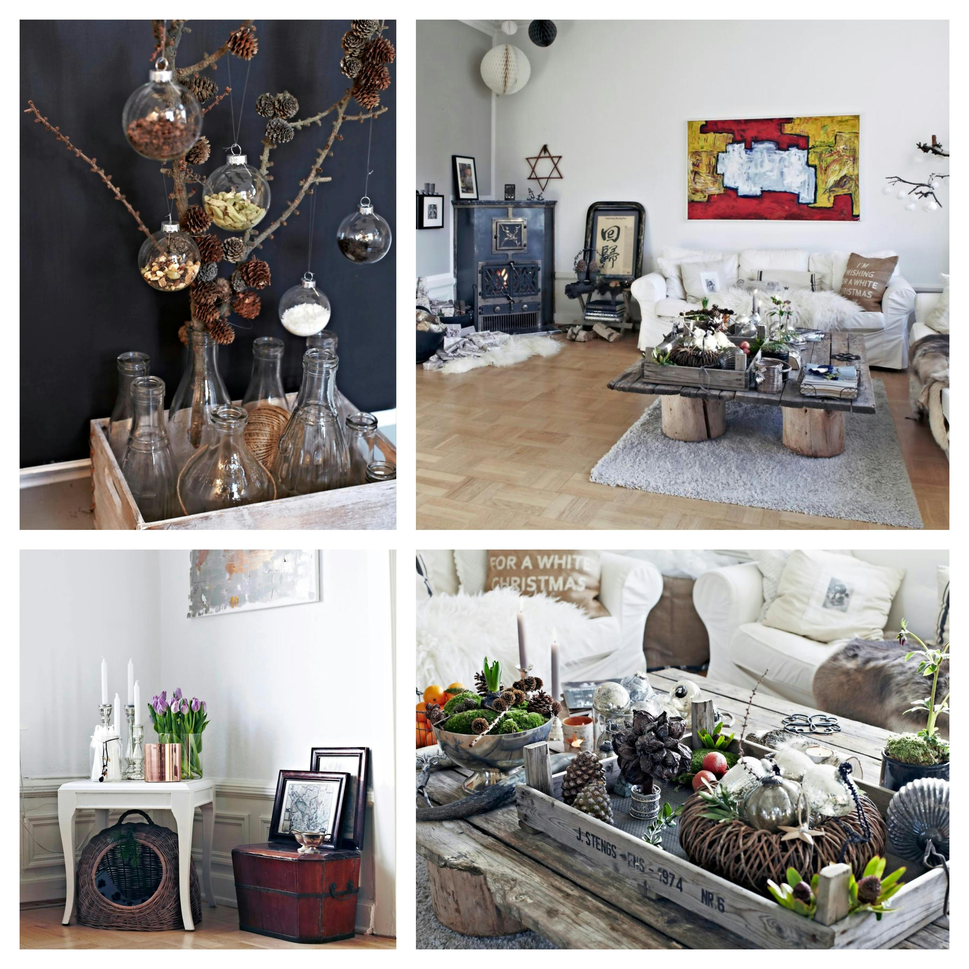 Marianne går efter en naturlig, nordisk og frem for alt hyggelig jul. Derfor er opholdsstuen indrettet med lune lammeskind og sofabordet er fyldt med naturlige julestilleben. Den gamle æblekasse er fra Holland og fungerer som en rustik bakke til en samling af naturlig julepynt som mos, kogler, sten, grene, frugter og nødder. Farverne holdes i hvid, sort, guld, sølv og kobber.