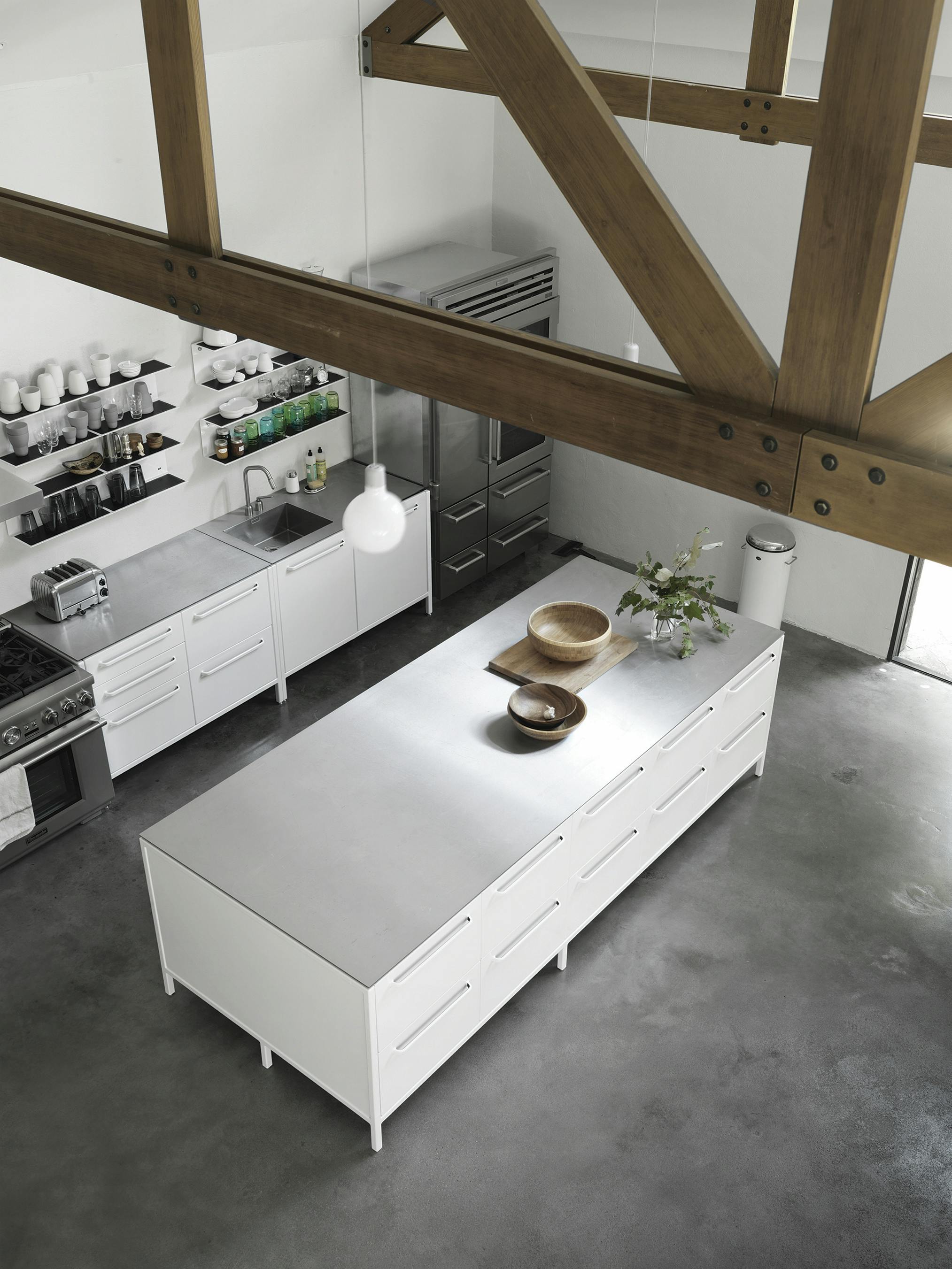 Til spørgsmålet om, hvorfor Marcus Wainwright valgte den hvide køkkenø fra det danske brand Vipp, svarer han: