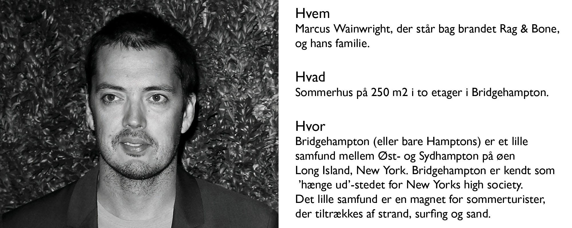 Marcus Wainwrights sommerhus i Bridgehampton, New York, hviler på tre tønder land. Det er omkranset af træer og ligger tæt på stranden. Da Marcus og hans familie købte huset for tre år siden, var det en overkommelig renovering, de gik i gang med.