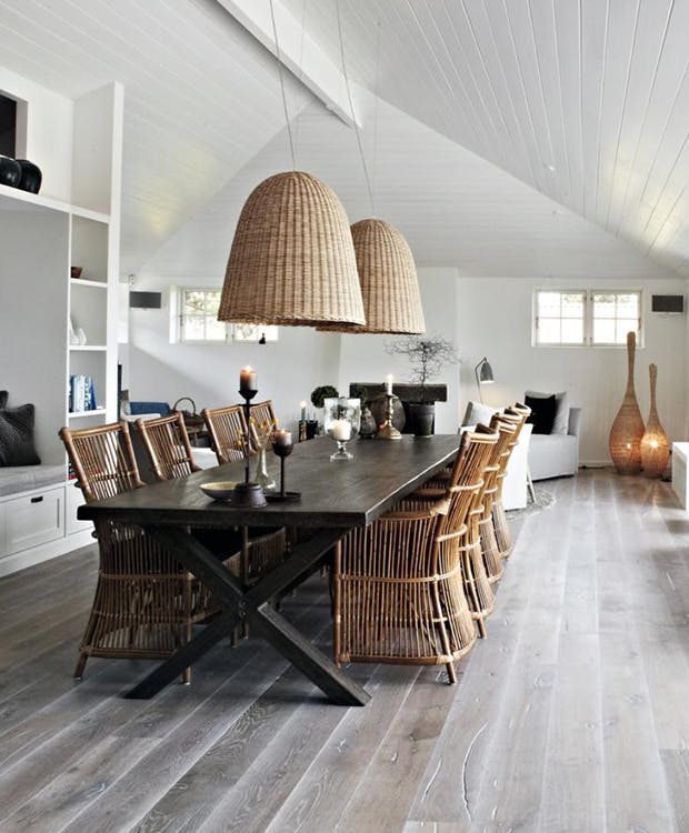 Charlotte og Lars finder oftest inspiration til deres to hjem på rejser og i boligmagasiner. Fx står der etniske skåle af træ og keramik rundtomkring i sommerhuset og signalerer internationalt udsyn i skandinaviske rammer.