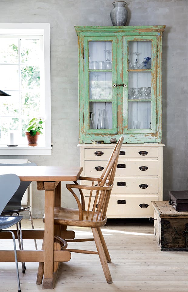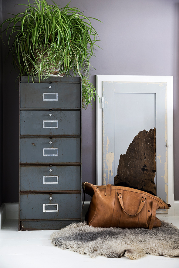 – Som udgangspunkt vil jeg kun have ting i mit hjem, som for mig er smukke eller har en historie. Også de små ting som fx gulvmåtten og garderobeknagerne. At omgive sig udelukkende med ting, man godt kan lide, er helt fantastisk, fortæller Helle, der har indrettet sig med en blanding af designerting, kunst, loppefund og hjemmelavede kreationer. Mange af tingene har parret sammen fundet på loppemarkeder, på genbyg.dk og i Ikea, og de holder meget af den personlige stil.