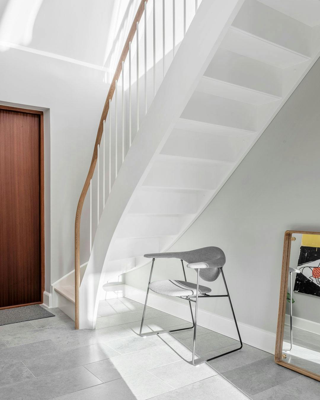– Fra starten havde jeg en klar idé om inddelingen af husets nye grundplan, men at få arkitekthjælp har betydet en langt større grad af anvendelighed og sammenhæng i de konkrete løsninger. Slutresultatet er en hel del mere gennemtænkt og fuldendt, end hvis jeg havde stået med det alene. Et eksempel er en lille detalje som messinglinjen, der adskiller fliserne fra trægulvet: En både markant og samtidigt subtil overgang. En anden er den nye hall, som går over i en stue på førstesalen – den giver en helt ny dimension til huset.