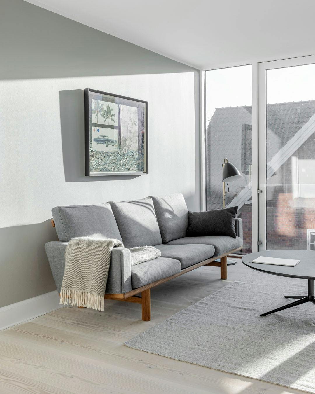 Wegner-sofaen er produceret af et nordjysk møbelfirma, der blev startet i 1899 af en driftig snedker ved navn Carl Pedersen. Sofabordet er fra Hay, lampen fra Gubi, og billedet af Kasper Eistrup.
