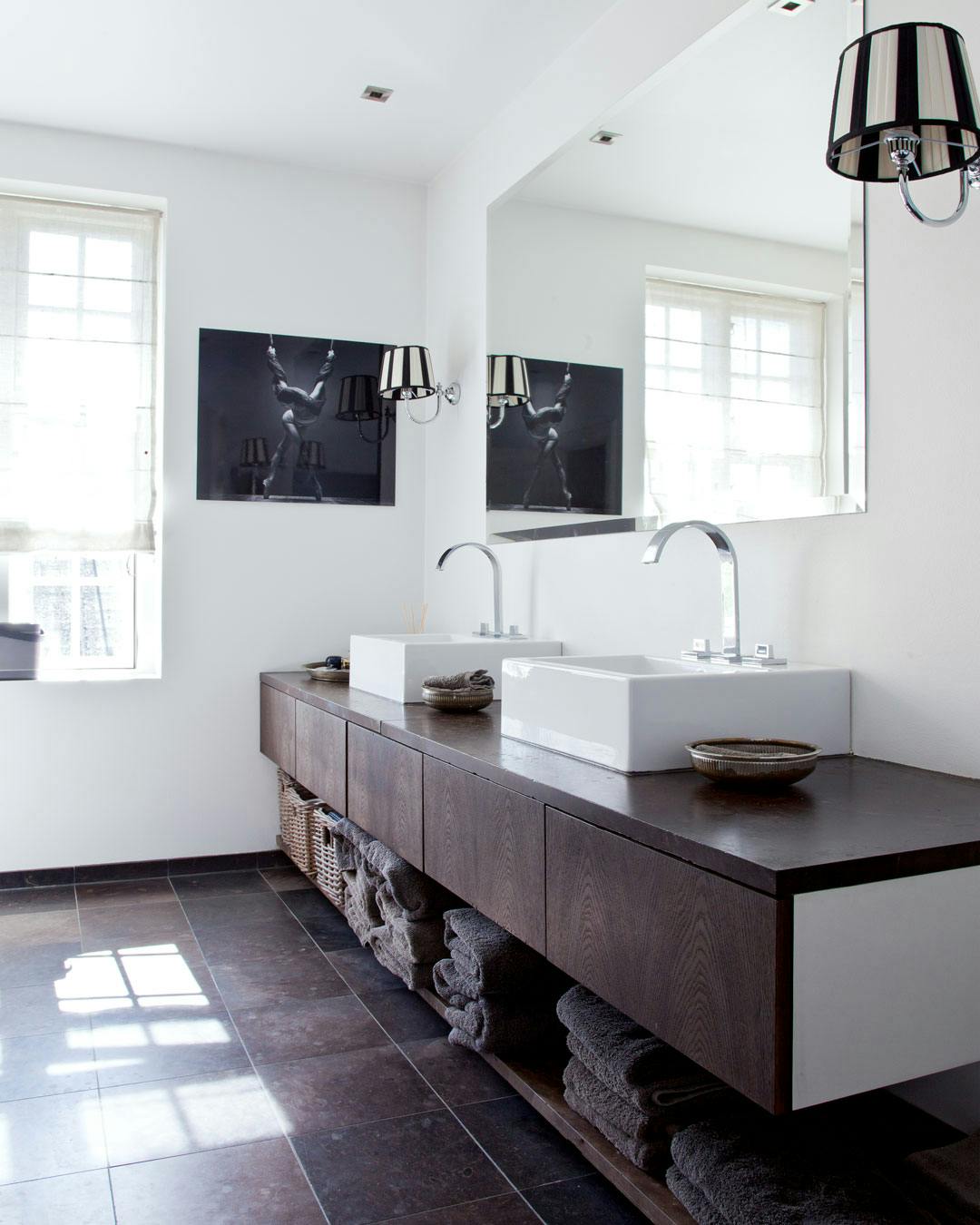 I et hvert badeværelse skal der kun lidt sort-hvid fotokunst til for at gøre rummet personligt.