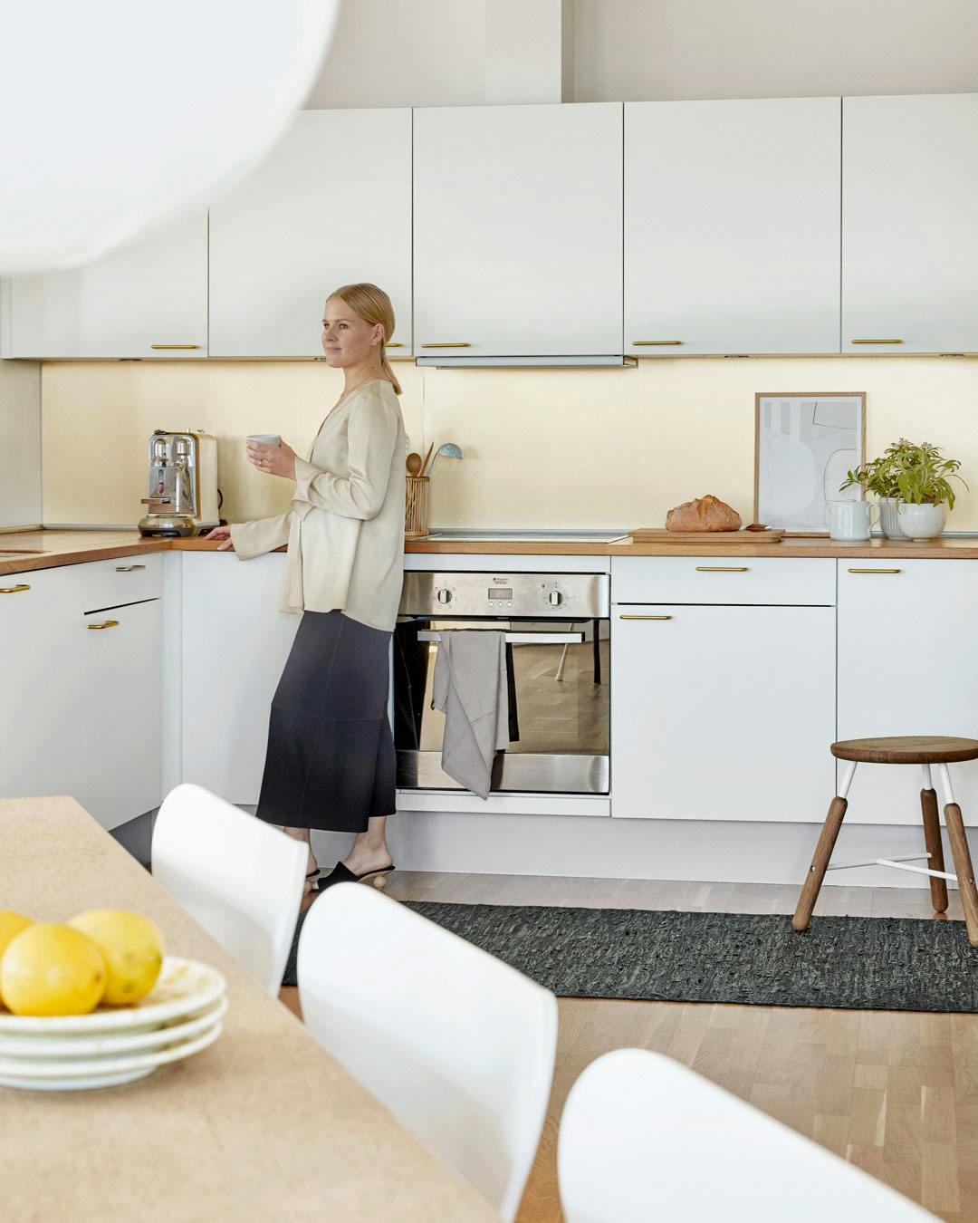 Caroline Birk Bahrenscheer betragter sig som en minimalistisk forkæmper, når det kommer til boligindretning og hendes hang til monokrome farver. Det har resulteret i et sanseligt hjem, hvor organiske former bløder de nybyggede rammer op på Islands Brygge.