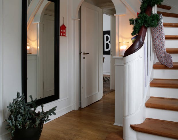 Dette arkitekttegnede hus i Gentofte er fra 1928. Det er tegnet af en arkitekt, der i sin tid byggede det til sig selv i en engelsk cottage-stil. Selvom stilen er holdt skarpt for øje, er der masser af rum til julehygge, når december står for døren.