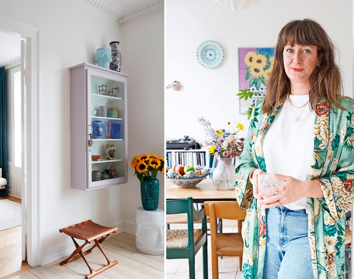 Man skal ikke træde mange centimer over dørtærsklen til Luna Signe Hørdum Nielsen og Jeppe Aagaard Junkers lejlighed på Østerbro, før man fornemmer, at her bor en idérig og kunstnerisk sjæl. Her er det ikke standardløsninger og strømlinet konceptindretning, som præger rummene, men en bredtfavnende æstetik, hvor italienske glasvaser, afrikanske masker og siciliansk keramik har fundet plads sammen med tegneseriefigurer og klassisk dansk midcentury-design.