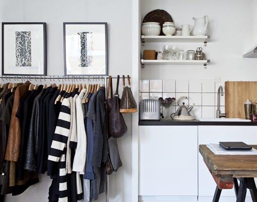 • Lad et tøjstativ fungere som et mini-'walk-in closet' til det tøj, som der ikke lige er plads til i garderobeskabet i entreen.