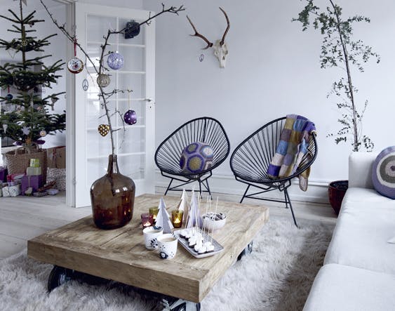 Det sidste touch af farver skifter et par gange om året. »Om foråret har jeg lyse ting fremme, fx et par puder, en glasvase og lidt fyrfadsstager. Om efteråret skifter jeg ud med mere støvede og mørkere farver. Der skal så lidt til,« siger Betina Stampe.
