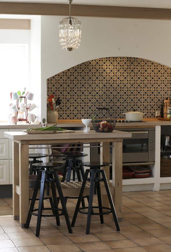 Louise Pelle og hendes mand købte huset i 2006, men huset skulle lige igennem en omfattende renovation, før familien for alvor kunne flytte ind. Der blev plads til et godt 60 m2 stort køkken-alrum, som Louise inderligt ønskede sig, fordi hun var træt af de små køkkener, hun tidligere havde haft. I dag bliver rummet brugt flittigt. – Når jeg laver mad, sidder børnene herude og læser, spiller computer og tegner. Det er hyggeligt, at vi kan være i samme rum alle sammen. Men det er også optimalt i forhold til udsigten. Man kan se både haven og havet fra køkken-alrummet, siger Louise. Køkkenet er indrettet med elementer fra Ikea, mens fliserne ved gaskomfuret er fundet hos ”Fired Earth” i København. SE BILLEDER FRA DET FINE LOPPE-HJEM I GALLERIET HERUNDER!