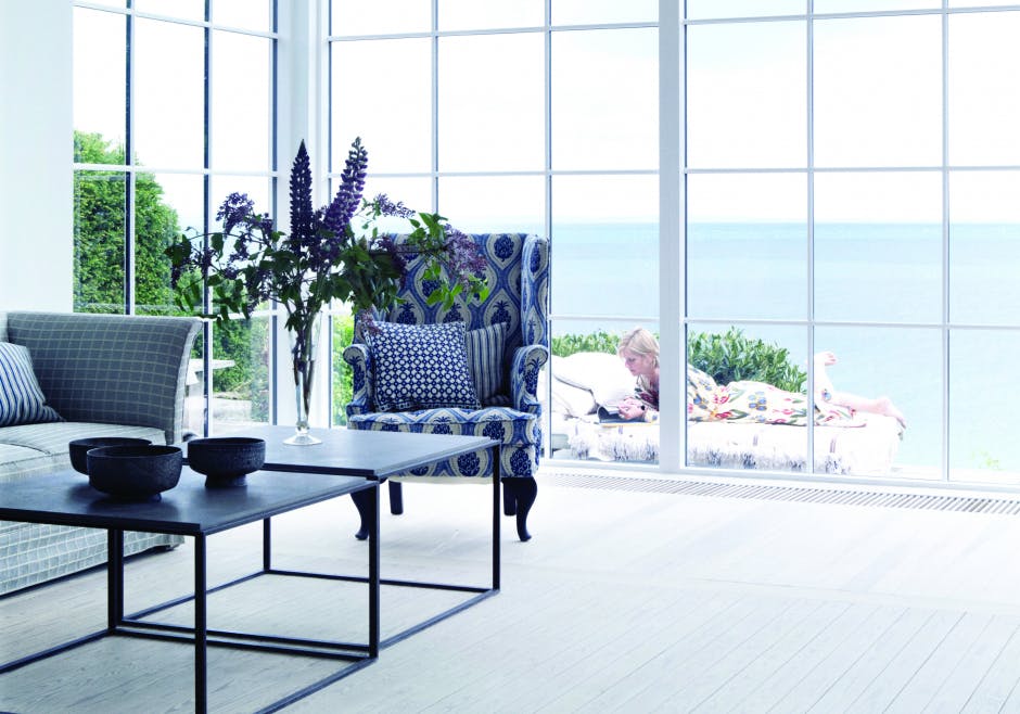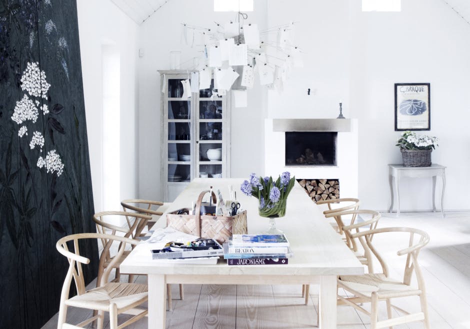- Køkkenet er altid fyldt med børn. Min bror Sørens tre børn (den fjerde er på vej), vores tre børn og deres venner. Når jeg er alene, sidder jeg i stuen og kigger på havet. Mellem huset og havet er der en lille “hemmelig” skov, hvor vi gerne griller, og Sofia har for nylig holdt en fest derinde under træerne. Vi svømmer fra molen dernede, for de stærke strømme gør havet rent nok til en dukkert.