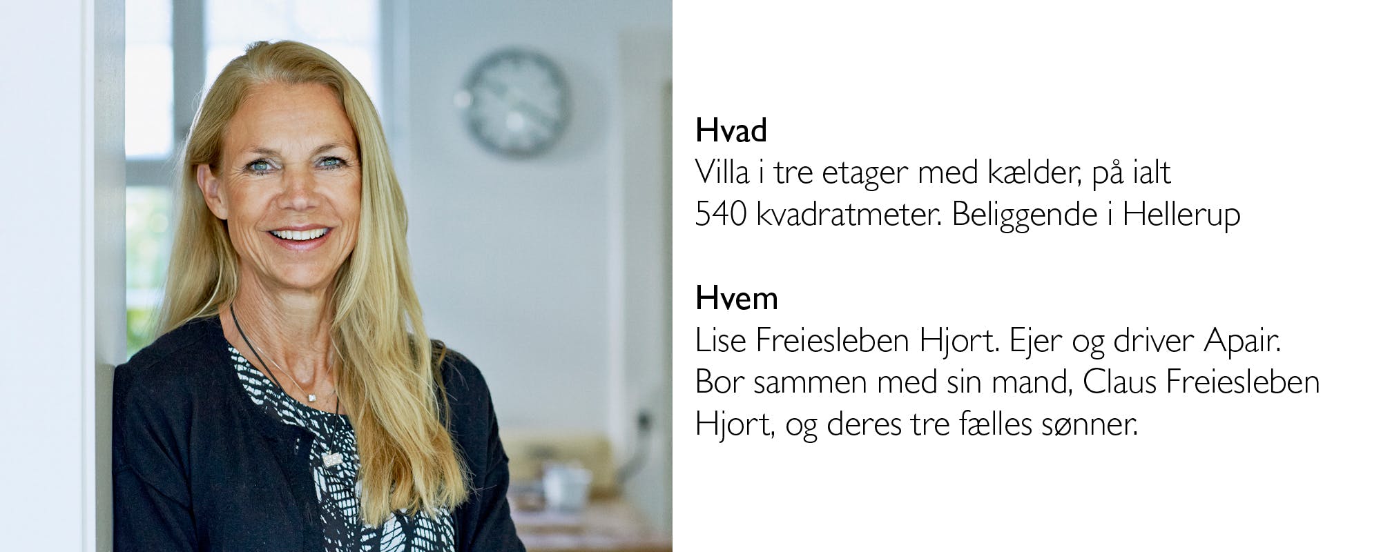 Når Lise Freiesleben Hjort går op af trappen til sit soveværelse på første sal i villaen i Hellerup, bliver hun ofte grebet af taknemmelighed. Det er ikke så svært at forstå, for den højloftede hall, hvor trinnene starter på gulvet og ender i en smal repos, er imponerende og ligger i øvrigt i en villa, de fleste drømmer om, men de færreste ejer. Men det er trappen i sig selv, der fylder Lise med ro og glæde.