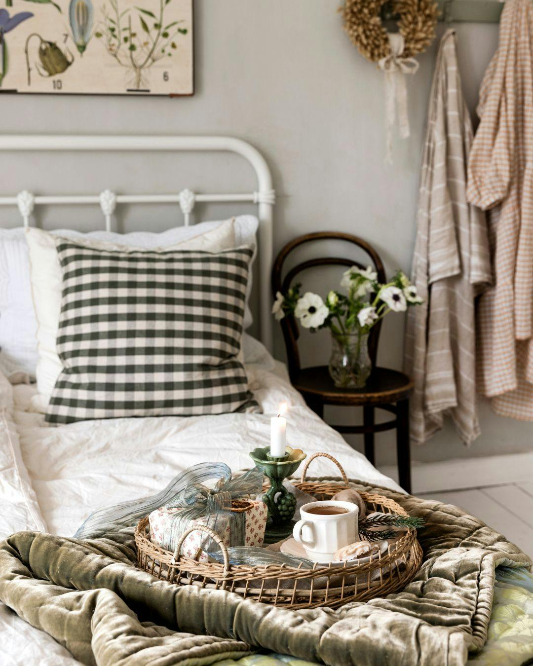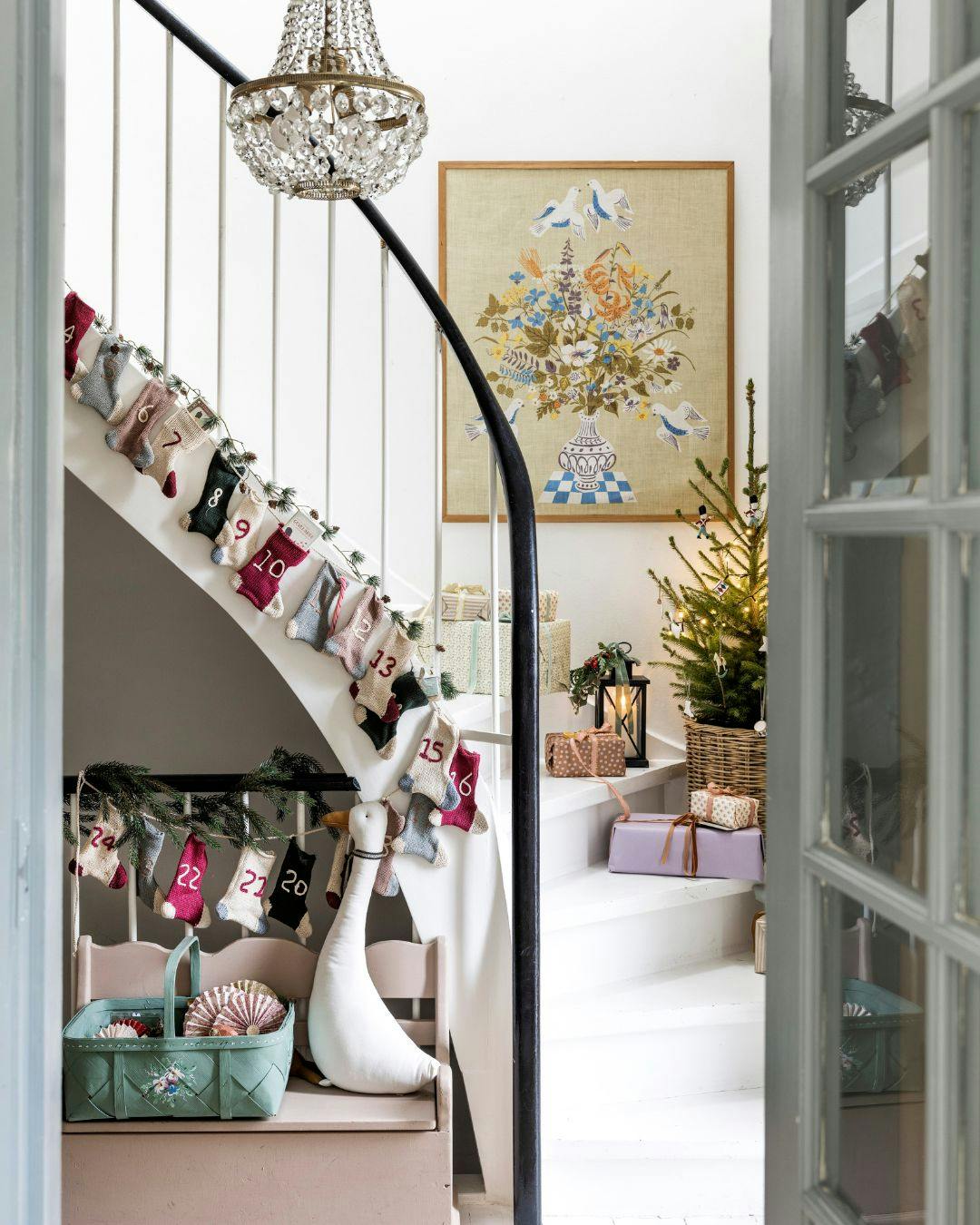 – I år har jeg brugt en gammel sovsekande til gran og hyacinter. Vi bruger den så sjældent, så hvorfor ikke stille den frem med julegrønt i. Det at kreere noget sjovt eller eventyrligt er for mig det, julen handler om. At træde ind i et andet univers, hvor der er plads til at drømme, siger Morin.