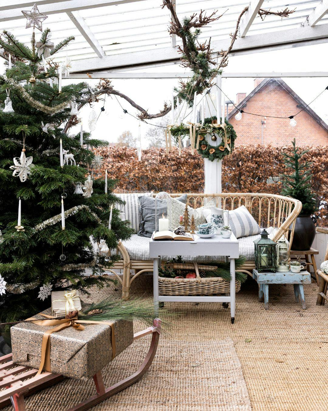 – Jeg kunne ikke nøjes med at pynte op indenfor, så vores overdækkede terrasse har også fået et eventyrligt præg her til jul. Det er hyggeligt at kigge på inde fra stuen, og vi kan nyde juletræet hele december, for det bliver ikke tørt, når det står ude på terrassen, siger Morin.