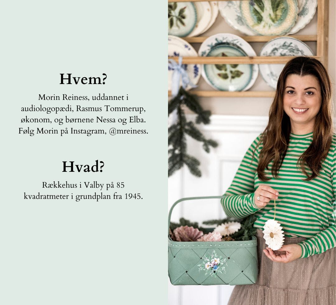 Altid på jagt efter vintagefund. Antikke møbler, tallerkner med patina og rustikke lysestager. Morin Reiness elsker alle former for genbrug, fordi det ifølge hende gør hjemmet hyggeligt og personligt. Det ses især i familiens rækkehus i Valby op til jul.