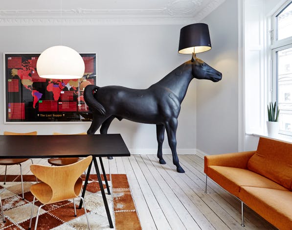 - Hverdagen er jo, hvad man gør den til, og derfor elsker jeg at komme lidt eventyr ind i hjemmet. Jeg kan godt lide at bygge indretningen op over tid og gå op i de små detaljer. Min filosofi er generelt, at der som sådan ikke er noget, man ikke kan - så hvorfor ikke have en hest i spisestuen eller en vandbøffel i køkkenet?
