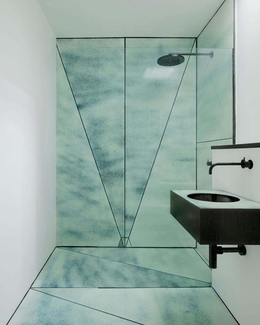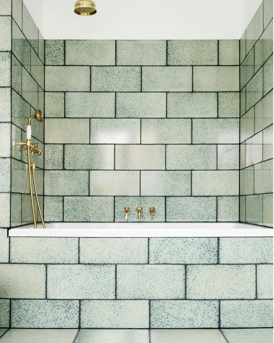 Vil du virkelig skabe blikfang på badeværelset, så gå efter mosaikker i forskellige nuancer inden for samme farve. Her er det glasmosaikker fra Bisazza.