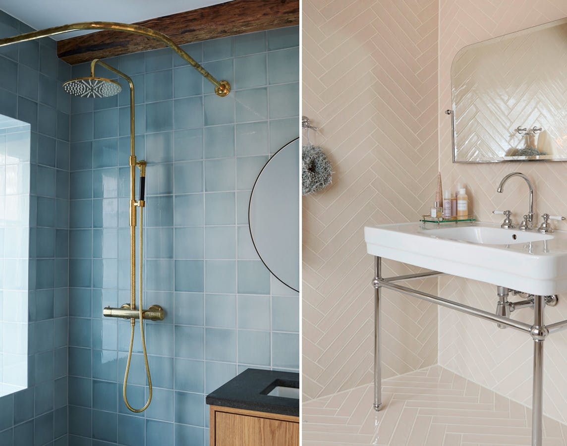 Vil have neutrale fliser, så kan du i stedet lege med mønstret. De italienske fliser i beigegul nuance er lagt i et smukt sildebensmønster, der understreger badeværelsets herskabelige udtryk. Du kan også lade fliserne gå helt op til loftet, hvis du sværger til det klassiske hoteludtryk.