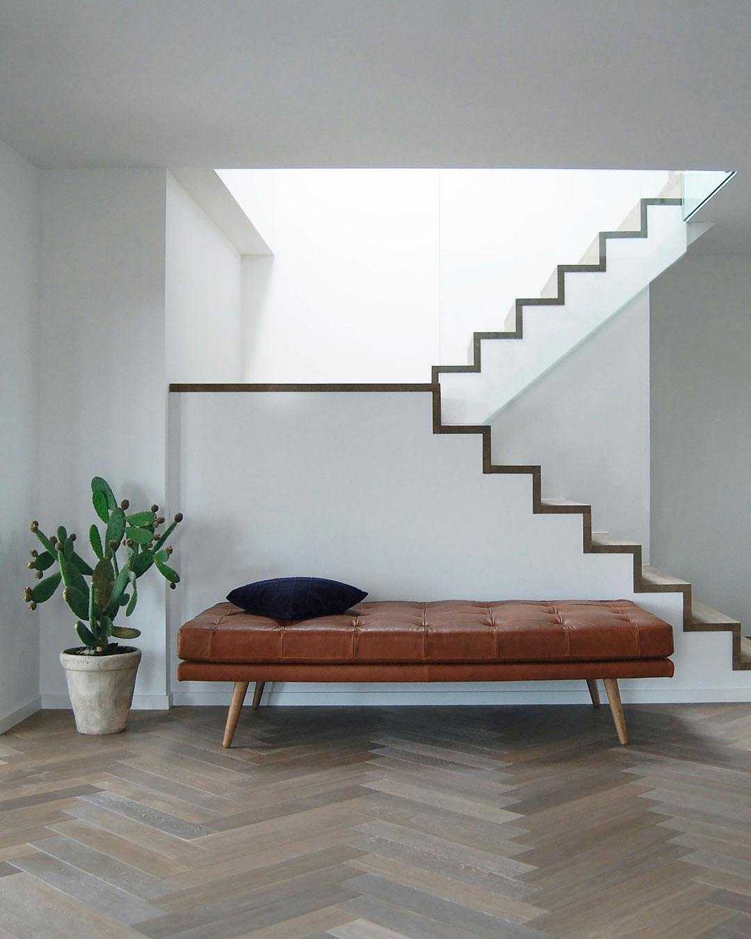 Med en en lædermadras og stål ben, kan du give din stue et moderne og industrielt look.
