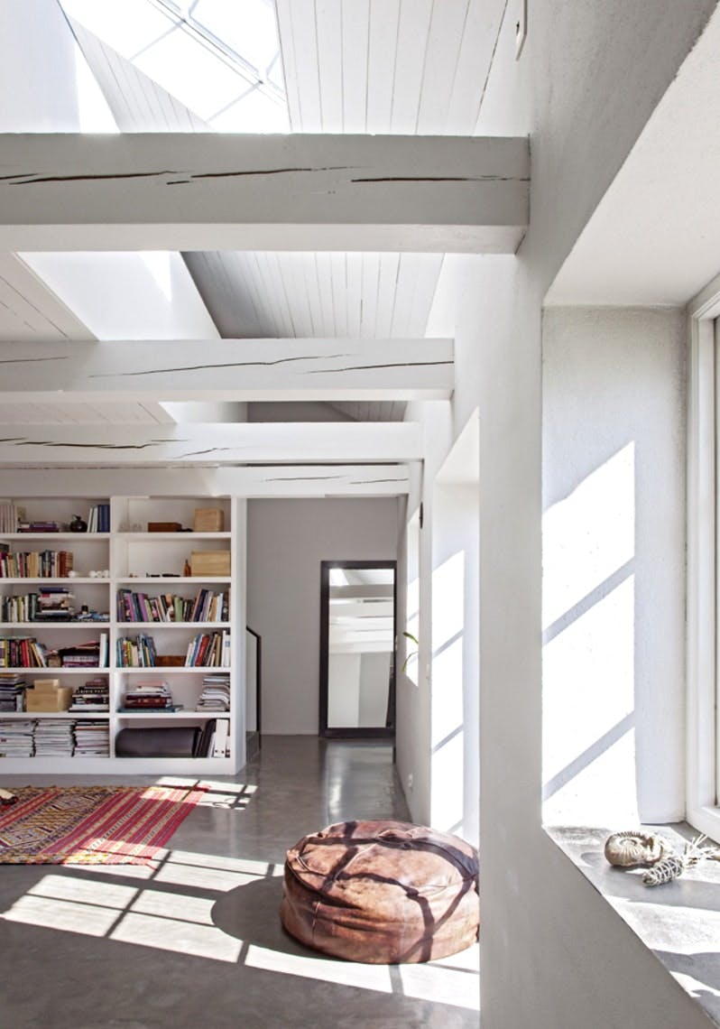Har du ikke så meget plads i rummet, så placér en bogreol oppe under loftet. Rummet virker mindre kompakt, og det giver mere gulvplads.