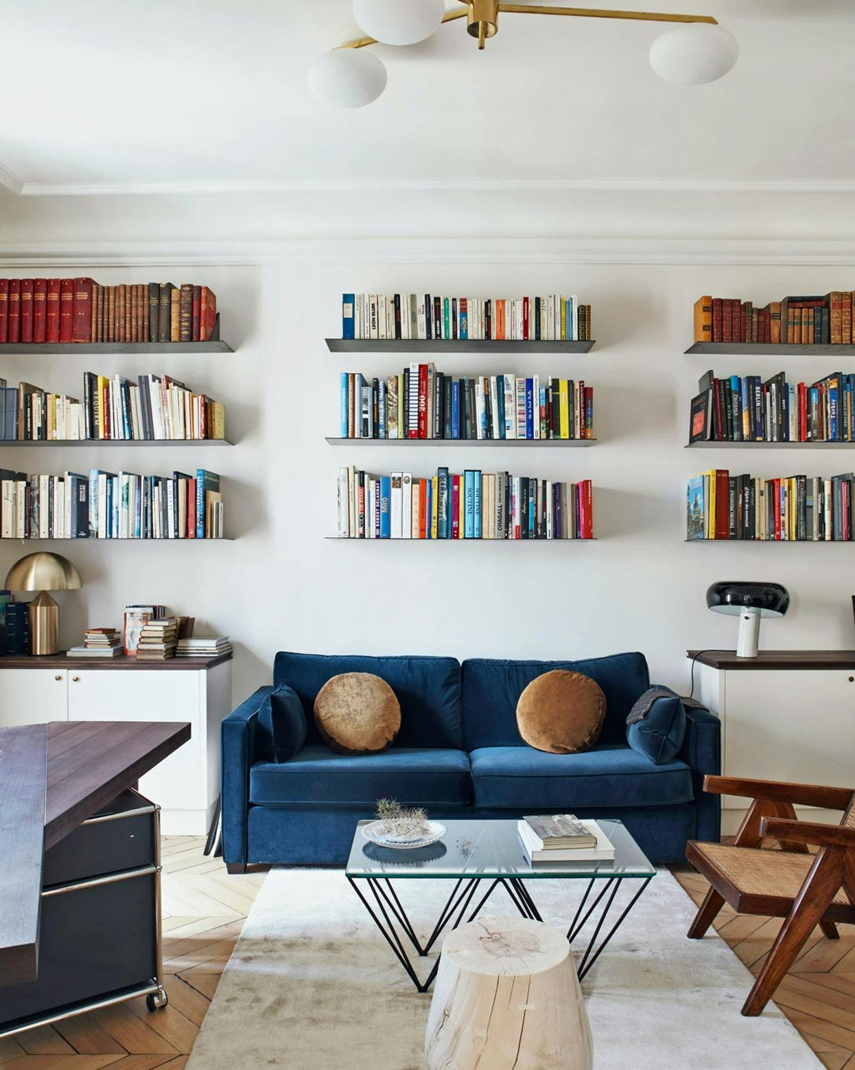 Tænk i kontrastfarver, og leg gerne med andet kunst på væggene, ved siden af din klassiske bogreol.